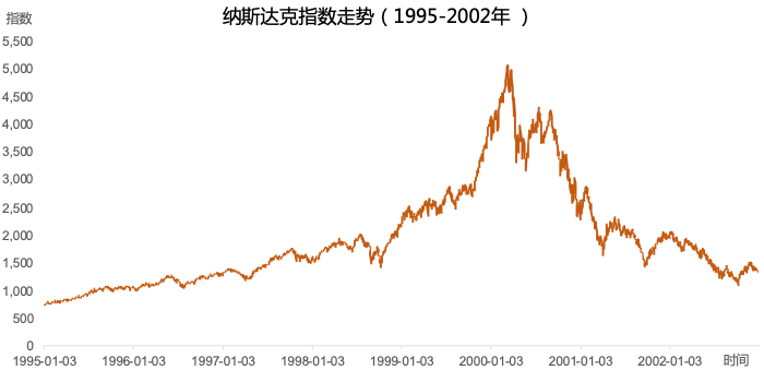 1995年初至2000年3月10日,纳斯达克指数从743点上涨到了峰值5132点,涨幅达590%。这期间,平均每年有200家科技公司在美国上市,虽然大部分质量很差,但依然备受追捧,平均首日涨幅达50%。在泡沫的巅峰,1999这短短一年内,美国新创造了250位亿万富翁和成千上万的新百万富翁。