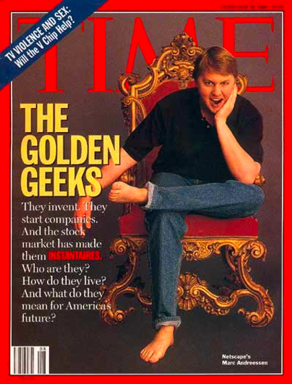 所以网景的上市真正点燃了“硅谷梦”。就像网景的CEO吉姆·巴克斯代尔说的那样,“网景的上市带动了很多事情。技术人员开始对这些新科技感兴趣,商人因这些技术可以带来的利润而激动。这些年轻新贵的出现让其他人也开始跟风,他们想,‘如果这些毛头小伙都可以赚到大钱,我也可以’”。